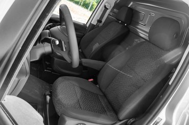 A vezetőfülke a kategóriában a jobbak közé tartozik, de nem a legjobb: egy Transporterben például jobban ülök, kényelmesebb és valahogyan tágasabb is. A raktér fala behatárolja a lehetőségeket, a középkonzol is zavaróan közel esik a térdhez, illetve az ülés is kényelmetlen - hiába került bele az 56 ezres felárú komfort vezetőülés, sehogyan sem sikerült jól beállítani, és a rövid ülőlap sem támasztja alá kellemesen a combot. A praktikus apró részletek viszont rendben vannak, mert hiába nem játszottak ki minden lehetőséget, nincs lehajtható asztalka vagy csipeszes irattartó, de van bőven zseb és tároló , például a másfél literes palacknak is jut hely az ajtózsebben. A napi teendőkhöz szükséges dolgoknak, mint a menetlevélnek, a telefonnak és a tollnak mind van végiggondolt helye, a kezelőszervek pedig mind egyértelműek és logikus elrendezésűek.