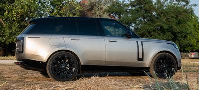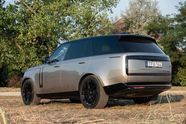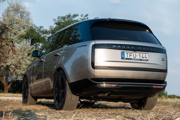 Elölről még semmi, hozza a márkaarculatot, de oldalról már elég súlyos az óvatosan lecsapott tetővel, a hátulja a hatalmas ovális elemmel, amibe begyógyították a féklámpát is, az rendesen maradandó. Sok hobbiterepjárón nem látszik a pénz, legalábbis nehéz felfedezni az elköltött milliókat, ezzel szemben a Batumi Gold árnyalatú Range le sem tagadhatná a 68,6 milliót. Nem is annyira a dizájn, hanem homogenitása miatt látszik különlegesnek: olyan, mintha összeraktak volna egy autót, majd nekimentek volna egy szuper finom csiszolópapírral, és addig csiszolták volna, míg egy megbonthatatlan tömböt nem kaptak. Hogy meglegyenek az arányok: ezen az autón a 23 colos kerék van, bár azt nem értem, miért kellett feketére fújni, mert így 2-3 colt letagadhat. Cserébe legalább üt, hiszen peres mint állat.