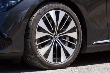 Szintén téboly az összkerék-kormányzás, a hátsó kerekek 10 fokot fordulnak, ami elég arra, hogy ha valahol kitekert kormánnyal hagyjuk ott, a haver szóljon, hogy odacsaptuk a hátsó futóművet. 10,9 méter a fordulóköre, ami kisebb mint egy Ford Fiestáé, pedig az EQE tengelytávja akkora mint egy S osztályé. Ez a gyakorlatban azt jelenti, hogy a rövid túlnyúlások és a nagy hátsó kormánykitérés miatt nekem újra kellett tanulnom parkolni, ugyanis az első pár jobbra hátra parkolásnál majdnem beletoltam az oldalát a mellettem állóba. Ezzel együtt is olyan könnyedén kezelhető, ami sok kompaktnak nem jön össze. A tengelytáv miatt viszont nem árt figyelni, mert hiába nem alacsony a kaszni, könnyen leérhet szerényebb padkán is, nem hiába emelhető a magassága.