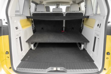 Ezeket az égbekiáltónak talán nem nevezhető problémákat leszámítva még az ID Buzz személy-kivitele is beválna adott esetben teherautónak. Aláhúzza ezt a terhelhetősége is. Az 529 kilogrammba az öt utason felül (75 kg-os átlaggal számolva összesen 375 kg), még 154 kilónyi rakomány tehető be, ami azért elég combos az átlagosnak számító 60-80 kilóhoz képest. (A teherszállításra kitalált Cargo változat természetesen még teherbíróbb, az mindent egybevetve 648 kilót vihet magával.) Ám ezeken túlmenően is találni a teherautós rokonságnak betudható tulajdonságokat. Ilyen a magas üléshelyzet, a nagy ablakokon keresztül nyíló jó kilátás, a két oldalsó tolóajtó. A mérleg másik serpenyőjében azonban ilyen az is, hogy a második sornak nem jutott külön klíma vagy szellőzőnyílás, és hogy az utastérben minden kemény műanyagból készült, kivéve az ajtók könyöklőjét.