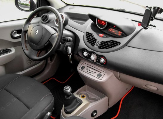 A szalonban a Twingo érezhetően olcsóbb volt a hasonlóan motorizált Cliónál. Hogy jött ez ki, hiszen méretre és súlyra nincs nagy különbség? Nyilván vissza kellett butítani. Nincs fedélzeti kompjúter, nincs megvilágítva az ablakemelő és a tükörállító kapcsolója, nem jutott fény a kesztyűtartóba, sem tükör az utasoldali napellenzőbe. A belső világítás egylámpás, nincsenek benne az olvasólámpák, csak a helyük – konkrétan két mini izzó és két billenőkapcsoló hiányzik. Filléres tételek, ezért is feltűnő, hogy szándékos butításról van szó.