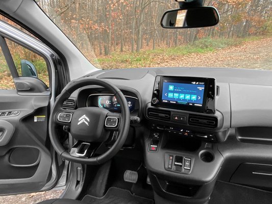 Kissé feljebb tekintve ott ül a 8 colos középső kijelző, aminek a grafikája nincs agyonbonyolítva, és ez ebben az esetben dicséretet jelent. Hál' istennek bár innen választhatjuk ki például a rádióállomásokat, az ikonok olyan nagyok, hogy még kesztyűben is simán eltalálnánk őket. A fedélzeti rendszer működése ugyanakkor nem mindig egyértelmű, egy telefon párosításának például többször neki kellett futni, mint ahogy a kapcsolat törlésének is. A gyári navigáció képét nemcsak itt lehet megjeleníteni, hanem a digitális műszerfalon is, ahol alapesetben a töltöttség szintje és persze a sebességmérő óra látható. Durva, hogy a franciák még mindig ragaszkodnak ahhoz a kissé barkácsnak tűnő megoldáshoz, hogy a tempomatot egy külön karról lehet kapcsolgatni, ami az index-fényszóró karja alatt van. Nincs az a szög, ahonnan vezetés közben látni lehetne, melyik gomb mire való, pedig van belőlük jó sok. Szóval mielőtt elindulunk az ë-Berlingóval, a kormány mögé bújva memorizáljuk a tempomatkar feliratait, ha használni akarjuk menet közben.