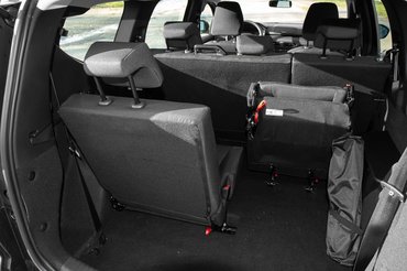 Hozzáteszem, hogy mi csak ketten ültünk az autóban viszonylag kevés csomaggal, de rövid úton hat felnőttel sem esett nagyot a Jogger rugalmassága, ami azért reménykeltő még akkor is, ha az út másik tapasztalata, hogy a hátsó válltér és lábtér valóban gyerekekre lett méretezve. Már eleve az hatalmas bónusz, hogy rövid útra hét felnőttel is elfogadható a Jogger, nagylelkűen ignorálva a típus kissé ferdén értelmezendő, de ettől még roppant magányos EuroNCAP csillagját.