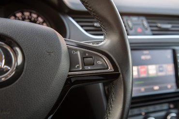 Légzsák szerencsére nem nyílt, így a belsejéhez nem kellett nyúlni. A belső egyébként rezonál a külsőre, merthogy az is nagyon egyszerű. Az alacsonyabban felszerelt kivitelek bele sivárabb, itt azért a bőr kormány és a nagy, érintőkijelzős központi egység feldobják az összképet. A klímakonzolt hála az égnek itt még nem érte el az érintősítés réme, bőszen tekergetheti a tekerőket és nyomkodhatja a nyomkodnivalókat bárki, aki hármas Octaviát vesz.