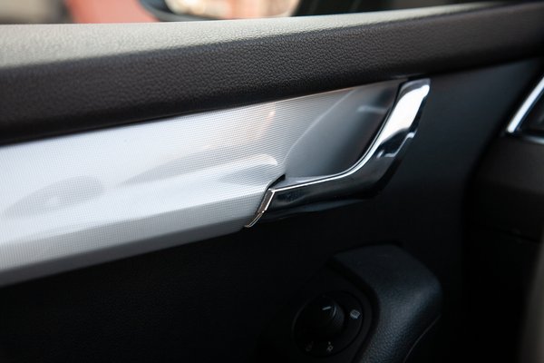 A kedvenc részletem a króm kilincs, ami mögött ügyesen hullámzik az ezüstszínű dekorbetét. Annyira jól néz ki, hogy szinte elüt a belső sokkal földhöz ragadtabb egészétől. Vicces viszont, hogy bár kulcs nélkül nyílik és indul az autó, a kulcsnak mégis van nyitható tolla. Pozitívum, hogy a kulcsnak és egy telefonnak is van dedikált helye a kézifékkar mellett, ez amolyan tipikus simply clever megoldás.