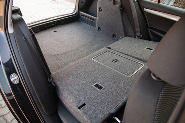 A csomagtér hasonlóan megdöbbentő: 610 literes, ami a hátsó sor lehajtása után 1740 literre növelhető. Ez a gyakorlatban annyit tesz, hogy brutál nagy a hely már alapból is, lehajtva pedig szinte végtelen. Okos megoldás, hogy a csomagtér borítását és az ülés hátlapját is ellenálló szövettel burkolták, ami azt ígéri, hogy durvább tárgyak se tesznek majd kárt benne. Az egyetlen negatívum, hogy az ülések lehajtása után sem keletkezik sík padló.