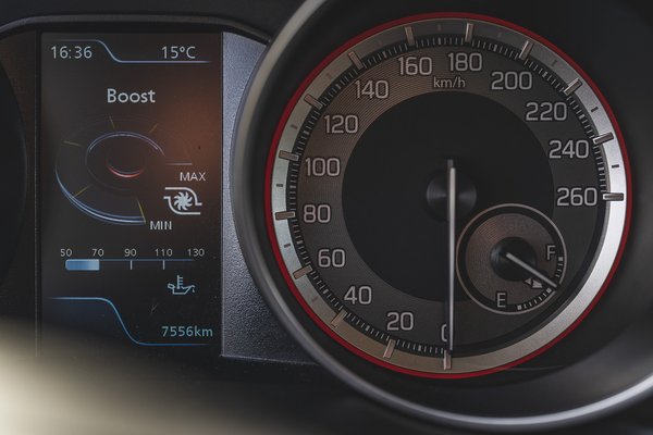 A beltérben vannak puruttyaságok: elöl ott van a szövetbetét az ajtóban, hátra ebből a nemes anyagból már nem jutott, egy sima Swiftnél elnézegeti az ember, egy közel 10 milliós autónál már fáj. Az ülésfűtés kapcsolója bináris, tehát vagy megfagysz vagy elégsz benne, a kormány karimájába pakolt zongoralakk pedig szintén kimaradhatott volna.