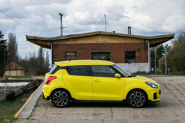 Észre fogod venni a parkolóban, nagyon sárga! Így kaptam meg a Swift Sport kulcsát, és tényleg nem kellett sokat keresni, a szürke-fehér-fekete autók rengetegében világítva üvöltötte a kocsi, hogy itt vagyok. Üvöltse is, ha már a kipufogóhangot nem csináltak neki.