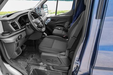 Jó egy éve mutatták be a villany-Transitot, és végre ide is elért. Nagy izgalmakra azért nem számítottam és valóban: a jármű utastere a jól megszokott transitos munkahely. Nagyon praktikus, én kimondottan kedvelem ezt a már több, mint 10 éve meglévő elrendezést.