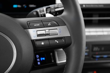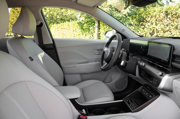 A bemutatóra egy Ioniq 5-tel autóztunk ki, a 480 kilométeres utat egy rövid töltéssel sikerült végigcsinálni. Ironikus módon az Ioniq-kal sokkal közelebbi barátságot sikerült kötnöm, mint a Konával, az összehasonlítás mégis hasznos volt. Rájöttem, hogy a Kona hasonlóan agilis, praktikus és komfortos, csak éppen egy méret- és kényelmi osztállyal lejjebb. Berendezése modern és világos, figyeltek az ergonómiára a mindennapi igényekre. Sok a tárolóhely és a kütyük használatára, töltésére is gondoltak. Több formai és hangulati elemet is az Ioniq modellekből vettek át.