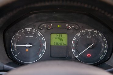 A tapintásjavító bevontatot szerencsére a Skodákban nem erőltették, így semmi nem ragad és nem is foszlik csúnyán. Egyedül az első ablakemelők éleiről fogyott el látványosan a festék. A rádió elhalálozott, azt egy méretben helytelen, funkcionalitásban tökéletes, Fabiából származó egység váltotta. Szinte hihetetlen, de minden funkció tökéletesen üzemel: a kétzónás digitklíma, a tempomat, az összes ablak, az összes hangszóró, pedig ezek még gyáriak. A belteret tehát magabiztosan nevezhetjük tartósnak, bár itt később még lesz egy bosszantó de.