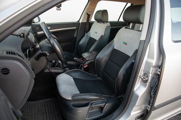 Belül azonban vannak meglepetések. A legmeglepőbb körülmény, hogy az ülések kiváló állapotúak, ráadásul egy magasabban felszerelt változatból érkeztek: az előző tulaj szerzett egy szett Octavia RS ülőt, amit a jelenlegi tulaj egy ezekhez passzoló kormánnyal egészített ki. A kontraszt szinte mellbe vágó a külső és az RS cuccok között. Különben a beltér többi eleme se olyan gáz, sokkal rosszabbra számítottam. Vannak kopások, hogyne, de nem drámai a helyzet, láttunk már ennél sokkal rosszabbat, nagyságrendekkel kisebb futású autókban is.