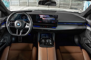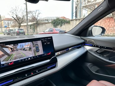 A Cobra 11 óta tudjuk, hogy az 5-ös BMW körzete az autópálya, és természetesen a G60 is egy remek utazóautó. Az előző generációhoz képest ismét szélesebb lett – most bő 3 centivel –, de a sokak által örök referenciaként emlegetett E39-nél konkrétan 10 centivel szélesebb az új, a forgalmi sávok viszont változatlanok maradtak, így sokat segíthet az AR-alapú sávtartó, ami az autó első kamerájának képére rajzolja, pontosan hol tartózkodsz a sávodon belül, és segít, hogy jó helyen maradj. Normál esetben persze nincs rá szükség, viszont pályaépítésnél, tereléskor hasznos tud lenni, könnyebben átlátod, mennyi helyed van, amikor jobbról kamion, balról meg a szalagkorlát fenyegető auráját érzed.