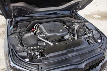 Az 520d az egyetlen, 200 lóerő alatti belső égésű motorja a szériának, a 10 éve jól ismert B47-es motorcsaládhoz tartozó kétliteres, négyhengeres dízel van benne, lehet rendelni hátsó- és összkerékhajtással is, minden esetben mild hibrid rendszerrel. 7,5 másodperces 0-100-gyorsulásnál, és az ehhez tartozó dinamikánál sosem várnék többet egy ilyen autóban, a 400 Nm áldásos hatásait érezni, a 8 sebességes ZF automata nagyon lágyan kapcsol a fokozatok között, a megannyi szigetelésnek hála pedig tényleg semmilyen dízeles zaj nem jön át, hidegen beindítva, nagyon fülelve és figyelve lehet érezni hovatartozását, de el nem tudom képzelni, hogy ez bárkit is zavarhatna.