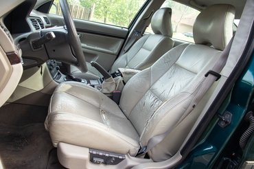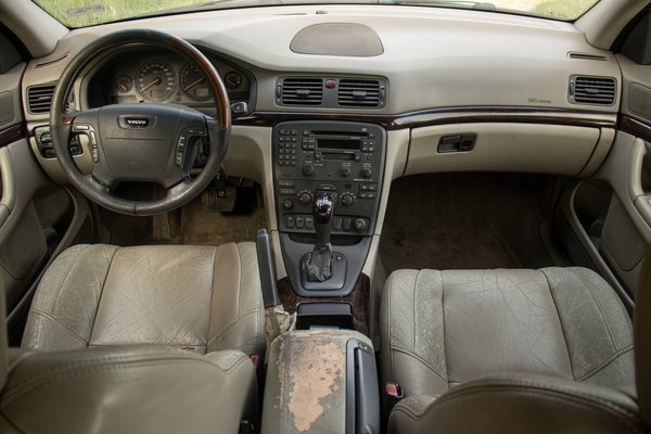 Ez egyébként korabeli Volvo-betegség, a beltér rettenetes csúnyán pusztult minden típusban, ez alól a tesztalany sem volt kivétel. A kormány fa-imitáció burkolata darabokban mállik és ragacsos trutyi terjeng a karimán. A váltókar szoknyája szétrepedett, néhol megszakadt, míg a könyöklőre nem szívesen emeltem rá csupasz alkaromat. A sofőrülés huzata ahol csak tudja, engedi ki magából a pergő szivacsbetétet és millió repedés tarkítja az egykoron szép vajbőr felületet. 180 ezer kilométerrel az órájában rettenetesen elpusztult belülről ez az S80, csak a hátsó sorban nem következett be ilyen jellegű mészárlás.