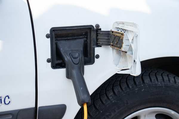 Kívül kizárólag a jobb első sárvédőben kialakított ajtócska lehet gyanús. Ezen van egy nagyobb dudor, hiszen el lehet alá rejteni a töltőcsatlakozót, miközben 3 kW-tal folyik áram az eredetileg 11 kWh-s (20 darab 6 voltos cella és 100 Ah) nikkel kadmium akkumulátorba. A töltőt beilleszti az ember, majd lehajtja, ilyenkor a rendszer elektronikusan lezárja, mint egy modern autónál. Ezt a visszahajtott ajtó rejti, csak egy napszítta narancssárga 220-as kábel tekereg villásdugóval a végén – ez igazából nagyapám hosszabbítója is lehetne.