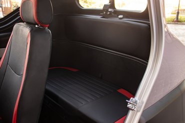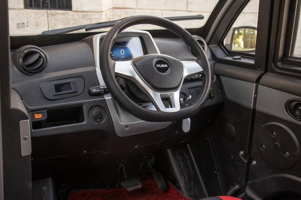 Mivel nagyon keskeny, az ülések középen vannak, egymás mögött, aminek az a váratlan előnye, hogy a sofőr tetszés szerint jobboldalon és baloldalon is kiszállhat. Csepegtettek bele egy kis luxust is: az ablakok elektromosak, van központizár és még Bluetooth-on keresztül is lehet benne nyekergetni a saját zenénket. A Kuba City minden részlete azt kommunikálja, hogy ez valamiféle nagy játékautó: a belső például egy az egyben olyan, mint a gyerekeknek szánt, elektromos kisautóké.