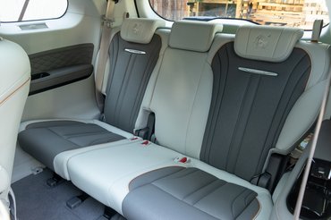 Ennyi ember valószínűleg ritkán ül majd benne, mert bár az első két üléssor fejedelmi, a harmadik azért már kicsit szűkösebb. Eleve az, akit a középső ülésre száműznek, egy satuban érzi majd magát, míg a másik két ember csak akkor örül a fejének, ha nem nőtt 170 centinél magasabbra.