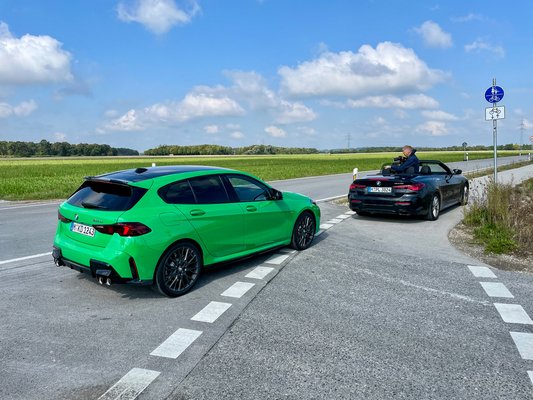 A motor helyzete és a hajtás miatt kompromisszumtól, árulástól és keserű szájíztől tartottam, de az M135 már az első métereken udvariasan jelezte, hogy az aggodalmam alaptalan. Könyörtelen veretés vette kezdetét az aranyos német falvak közötti, kanyargós szerpentineken. A széles gumik és az ültetett, lehetetlenül stabul, adaptív futómű úgy leragasztották az összkerekes, bő másfél tonnás kompaktot az útra, hogy érzésre le se lehetett volna robbantani az ívekről.