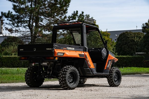 Ritkán kerülök ilyen munkagépek közelébe, amikor megnéztem a képeket, egyből a Polarisra asszociáltam. Az amerikai márka régóta kínál hasonló eszközöket, de az átlagember számára talán csak az RZR jelenti a Polarist. Az inkább játékautó, mintsem munkagép, de ott van nekik a Ranger, arra hajaz a leginkább a Terrain DX4. A márkát továbbra sem tudtam elhelyezni, pedig a Corvus – ami egyébként latinul varjút jelent – egy spanyol gyártó, és ők az elsők Európában, akik UTV-kel foglalkoznak. Ez a terepre alkalmas munkagépek gyűjtőfogalma: UTV – Utility Terrain Vehicle.