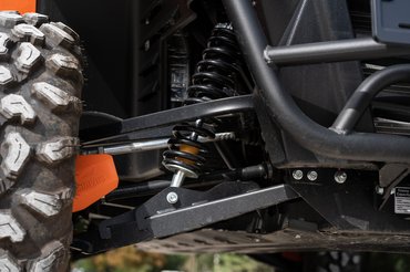 Igazán váratlan élmény volt, hogy a DX4 állítható lengéscsillapítói mennyire jól kezelik a mély erdei utakat. Ahogy suhantunk át a fák között, és elénk esett néhány kisebb-nagyobb gödör, a vállaim közé húzott fejjel vártam a becsapódást, a DX4 mégis mindig kimozogta. Nem nyúltam a beállításhoz, valahol középtájt volt a rugóelőfeszítés, így is trophy truck módjára simította ki a földutat a kettős-keresztlengőkaros futóműrendszer 50-60-as tempó mellett.