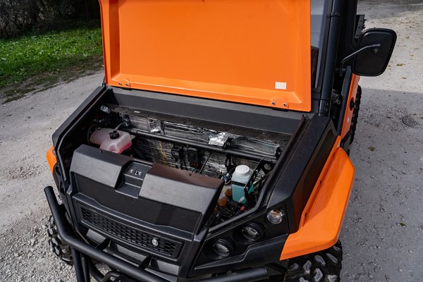 Egy olyan multifunkciós szerszám, ami mezőgazdaságban, erdészetben, illetve kertépítészet, kertészet, halászat vagy vadászat során is bevethető: nem akad el laza talajon, illetve nem okoz neki gondot egészen extrém helyekről kirángatni dolgokat. Ez megmagyarázza a 14-es acélfelnire felhúzott ballonos, bütykös gumikat, a masszív gallytörőrácsot, a 31 centis hasmagasságot, a ránézésre is masszív futóművet vagy a közel féltonnás teherbírású platót. Ezzel csak a felszínt kapargatom, nehéz lenne elsorolni minden elemét, ami munkára alkalmassá teszi, hiszen ezek egy része rendelhető extra. Olyan apróságok, mint elöl-hátul a vonószem vagy az ülések alatt elhelyezett 67 liternyi tárolódoboz az alapfelszereltségekhez tartoznak, de a tetőcsomagtartó, a fém tárolódoboz, a munkalámpa, a csörlő vagy a hidraulikus billenőplató még szóba sem került.
