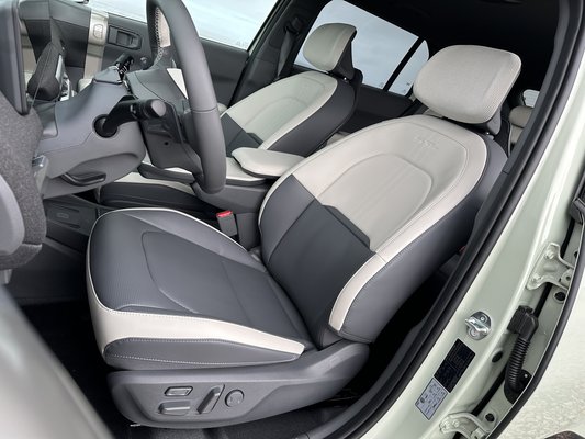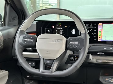 A Kia csinált egy három az egyben rendszert, egy air fryernél alig nagyobb egységbe sűrítették össze a 204 lóerős villanymotort, a fogaskerékáttételt és az invertert. Ebbe tényleg csak befut egy vaskos, narancssárga kábel, a másik oldalán pedig kijön az értékes hajtás a féltengelyekre, míg ugyanez visszafele is működik a regeneratív fékezés miatt. Az EV3-ban már megtalálható az i-Pedal rendszer harmadik generációja, ez lényegében egy egypedálos vezetést tesz lehetővé. Emellett van automata rekuperáció is, ami a külső körülmények alapján hangolja magát – például az előttünk haladóhoz képest fékez vagy enged gurulni.