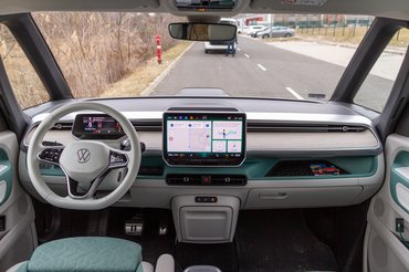 Ahogy egyik kisbuszt sem, úgy az ID.Buzzt sem a vezetési élményért használod. Nincs meg a késztetés, hogy gyors legyél vele, de ha kell, ott van a lábad alatt 286 lóerő és 560 Nm nyomaték. Kisbusz, de kormányzása nem hasonlít rájuk, inkább személyautós ebből a szempontból. Steril ugyan, de pontos. Emiatt a turista tempó illik hozzá a leginkább. A futómű is ezt a stílust pártolja, kellemesen rugózik, pedig a 31-es nem éppen egy tükörsima szakasz. Van Eco mód, de olyankor meg lehet fagyni az autóban, a Sport módot pedig olyan feleslegesnek találom, mint GTX verzióját. Vagyis a Comfort az igaz út.