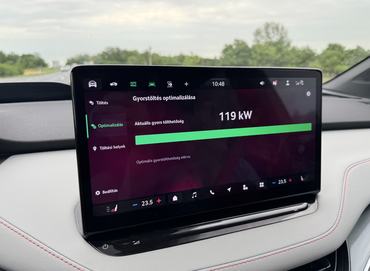 Tölthetőség és fogyasztás szempontjából is nehéz belekötni: tisztességes, mai sztenderdeknek megfelelő értékeket kapunk, miközben egyik számadattól sem kellett az államat keresnem a padlón. Hatékonyabb és gyorsabban tölthető autó is van a piacon. AC-n a sztenderdnek mondható 11 kW jár, DC-n pedig 175 kW a csúcs. Utóbbihoz az autó előfűti az akkuját, a menürendszerben pedig pontosan lehet látni, hogy aktuálisan milyen tölthetőséggel lehet számolni. A 20 százalékos töltöttségnél mérhető töltési csúcsot nem sokáig tartja, DC töltés esetén, alatt 50 százaléknál már 120 kW környéki értékre esett vissza a teljesítmény. A tendencia folytatódott: 70 százalék előtt beesett 100 kW alá, 80 százaléktól pedig 30 kW körüli értéket tudott. A lényeg persze az, hogy körülbelül fél óra alatt 250-270 kilométeres hatótáv beletölthető, ami az autópályás használat során tisztességes érték. Erős városi használattal 15, több autópályával 17 kWh körül alakult a nyári fogyasztás a teszt során.