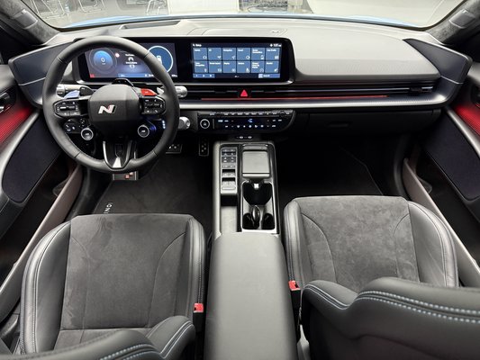 Olyan látszólag olcsó, mégis király elemekkel ront a helyzeten, mint az N Active Sound +, ami egy speciális hanggenerátor a bent utazók számára. Ilyennel korábban sokan próbálkoztak már, viszont a Hyundai rendszere tényleg nem rossz. Kissé belső égésű motor csengésű, de mégis egyedi darálás adja a ritmust a sofőr keze alá, de mi a bemutatóteremben álló helyben is pörgethettük a... hangot? Egyébként több hangmodell is van az autóban, szerintem ezek mind fokozzák a vezetési élményt, de eddig csak az 5 N-ben próbálhattam ki, a 6 N egyelőre szobadísz.