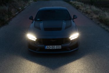 A sima GT is a legjobb Mustang valaha, de a Dark Horse csomaggal az igazi. Pakolom a böszme váltó fokozatait, rúgom a súlyos kuplungot és tekerem a nehéz kormányt. Ez nagyon vastag cucc, nem egy hétköznapi habkönnyű olvasmány. Mégis képes olyan pontos autózásra, mint egy MX-5, semmivel nem érzem nagyobb feladatnak a rendes menést mint a kis japán roadsterrel. Kiválóan tapad és pont jó helyen ülök ahhoz, hogy tökéletesen érezzem a Mustang mozgását.