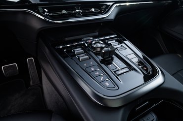 A beltér nagyrészt változatlan, a PRND végre lekerült a műszerfal tetejéről oda, ahova az isten eredetileg teremtette, a középkonzolra – amin annyi a zongoralakk, hogy már csak egy vörös ruhás Michelle Pfeiffer hiányzik a tetejéről. Minden mást bőr és könnyű Alcantara borít, mindenféle kombinációban, a tesztautó feketével megspékelt fekete összeállítását mondjuk nehéz hova tenni, ne legyen már emó, akinek Astonra telik. A hangulat visszafogott, elegáns, nagyon élesen elválik az olaszoktól, főleg a Lamborghinitől, de nem is az a pucc, amit a Bentayga/Cullinan kínál.