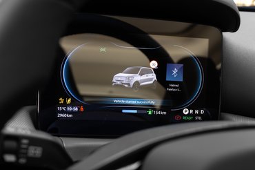 Az utastér kedves akar lenni, de sivár. Az anyagok kellemetlenek, a fényes felületek koszolódnak a fedélzeti számítógép pedig működésben és grafikában is a 10-15 éves tableteket idézi. Itt éreztem először azt, hogy olcsó autóban ülök és nagyjából 50 kilométerenként egyszer meg kellett győznöm magam arról, hogy ennyi pénzért ennyi jár. Meg kellett fogni a költségeket és az utastér pont egy olyan több faktoros elem, ahol ez könnyedén kivitelezhető.