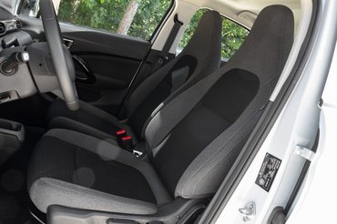 Megütötte a szememet, hogy az autó 1175 kilós önsúlyára további legfeljebb 300 kilót lehet rátenni, így négy darab 80 kilós emberrel már túllépjük a maximálisan megengedett terhelhetőséget – és akkor még nem tettem semmit a 210 literes csomagtartóba. Lehet, hogy a 165/65-ös gumik vagy a sokkülős alufelnik terhelhetősége szab gátat a nagyobb súlynak, de az se lepne meg, ha a puha futómű miatt mondták volna a mérnökök, hogy eddig és ne tovább. Városban stabil a terhelt T03 is – legfeljebb a körforgalmakban érdemes visszavenni a tempót – azonban az M0-son már az erősebb széllökések sem viccesek.