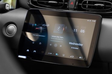 Nem csak a klíma digitális, olyan alapvető funkciók kerültek ide, mint a világításkapcsoló, a vezetési módok, illetve a különböző segéd és asszisztens elektronikák. Mindent egy egyszerű, átgondolt menüből kell kikeresni, mégsem érzem annyira ergonomikusnak, mintha dedikált gombja lenne. Értem, hogy így olcsóbb, de a magyar utakon döcögve eltalálni egy egyszerű tablet visszacsillanó kijelzőjén a kisebb-nagyobb gombokat nem könnyű. Előfordult, hogy olyan menübe keveredtem, amibe nem akartam, veszekedtem a két végállást ismerő fűtéssel vagy egyszerűen csak nem találtam el a belső keringetés gombját, miközben hosszú másodpercekig nem az utat néztem. Szóval tanulni kell.