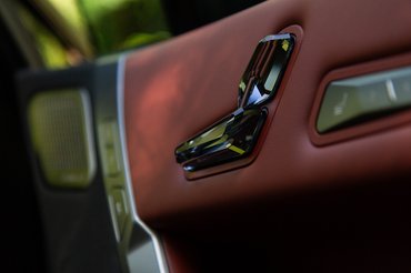 Az ajtó vastag, mint a vevőkör pénztárcája, így passzol a szélvédő alatti síksághoz, amiben hangszórók, légbeömlők és kisebb mozivásznak terülnek el. A könyöklővel együtt az arcunkba tolja a kristályüveg gombokat, mint a javaival hivalkodó földesúr. Mondjuk a gyémántot imitáló metszett üveg gombokon túl nekem csak a középső panel zongoralakk felülete szúrta szemem, pedig a frissítés előtti iX50-ből tudom, hogy lehetne itt matt faborítás is – az mennyivel ízlésesebb már!