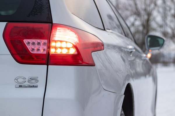 Az első fényszórók szigorú tekintete a hűtőmaszk kaján mosolyával alkot tökéletes együttest. Hátrafelé egy hosszú motortér után következik a zajszigeteléssel kitömött szélvédő, majd olyan hosszan elnyújtották tetőt, amennyire nem szégyellték. Végül egy enyhén döntött hátsó ablakban ér véget az autó szomorú tekintetű, de méltóságteljes hátsó fényszórókkal keretezve – meg is van a 4,83 méteres hossz. Ezzel a C5 az azonos korú E-osztály (W212), A6 (C6) és 5-ös BMW (E60) ligájában mozog, csupán egy-két centivel marad el tőlük hosszban és tengelytávban. Még úgy is, hogy a C5 ordas nagy túlnyúlásokkal operál, így a 12 méteres fordulókör mellett ez a másik ok, amiért nem egyszerű vele a parkolóban manőverezni.