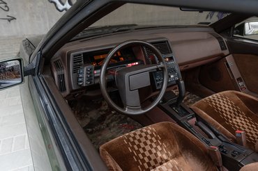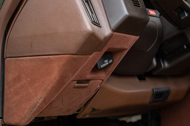 Bukólámpák, kivehető tetőlemez, keret nélküli ablakok, távirányítós központi zár, és még a kilincsek sem egyszerűek, egy rugós fedelű ajtócskán kell benyúlni, hogy meghúzhassam. Állítólag a légellenállás miatt kellett, szerintem csak azért, mert más ilyet még nem csinált akkor – a Corvette C3-on van hasonló, de máshogy működik. Ezzel együtt az autók összeállítása is rettentő különös volt, a sima fekete belterű változatok mellett volt ez a barna és kék is, ezekhez minden, de tényleg szinte minden egyes belső elemet gyártottak a hozzájuk passzoló színben, de még az ablakokat is hozzá színezték: a kék beltérhez kékes árnyalatú üvegek jártak, a barnához bronzosak. Így szerezz hozzá bármit a bontóból…