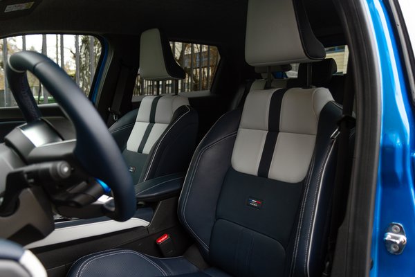 Belül két kényelmes és tisztes oldaltartású ülésből indul ki az élmény. A menetválasztó bajuszkart lecserélték az Alpine-féle gombos megoldásra, a menürendszer tele van mindenféle sportfunkcióval a guminyomástól elkezdve a köridőn át a virtuális telemetriáig, van OV-gomb, ami arcade játékokat idéző módon extra teljesítményt ad az előzésekhez és egy kék forgókapcsoló a regeneratív fékezés állításához. Természetesen az alapfunkciók és az Android 12 alapjaira épülő operációs rendszer főbb elemei nem változtak meg a testvérmodellhez képest. Megvan a kábel nélküli CarPlay és Android Auto telefontükrözés, vezeték nélküli telefontöltővel, de USB-C csatlakozóból is kettő jutott előre.