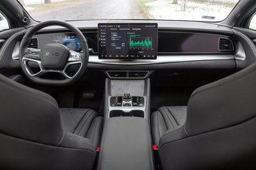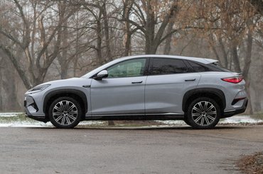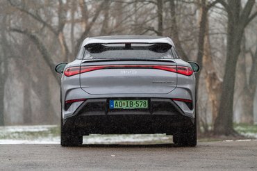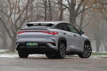 A fogyasztás 0 fok körüli hőmérsékleten 21-22 kWh/100 km volt, 120 km/h-ra állított tempomattal majdnem 30, de volt olyan 50 kilométeres szakasz, ahol a fűtés miatt 37 lett a vége (kiszámolva, nem az autó szerint), ami nem kimondottan kevés. Bár a Cd értéke korrekt (0,28), a homlokfelületét és a 2,3 tonnáját nem tudja ellensúlyozni: vegyes felhasználás mellett hidegben 320-350, jó időben 420-450 kilométer körüli hatótávra kell számítani. A konkurensek közül a BYD-ben van messze a legnagyobb kapacitású akkumulátor, de mivel kisebb energiasűrűségű, mint az NMC-k, a hatótávja nem kiemelkedő, ahogy a 150 kW-os tölthetősége sem: közepesen előfűtött akkumulátorral, fagypont körüli hőmérsékleten 103 kW volt a maximum, a töltési görbét a galériában mellékelem.