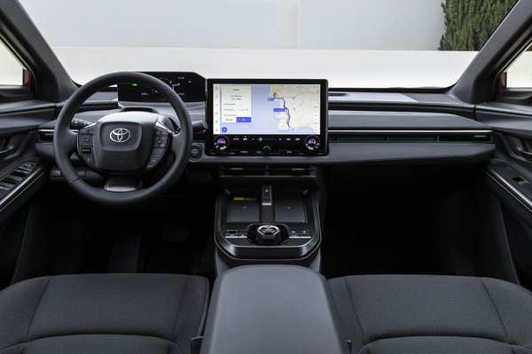 Az autó a pár éve már bejáratott Toyota-belteret kapta meg, aminek pozitív hozadéka, hogy lényeges funkcióknak vannak fizikai gombjai (full klímapanel sajnos nincs); negatív viszont az infotaiment A-tól Z-ig és a sofőr előtti műszeregység furcsa pozícionálása. Előbbin nincs mit szépíteni, tűzre való, idejétmúlt, UX szempontból rettenetes felület, ami valószínűleg vezetésbiztonsági szempontok miatt lett ilyen, hogy a sofőr soha ne is akarjon ránézni. AndroidAuto, Apple CarPlay és vezeték nélküli töltés természetesen van. A műszeregység a láthatósága miatt bukik el, mert egyébiránt lényegre törő kis panel, de a kormány felső karimája a sofőr testmagasságának függvényében kitarja egy részét vagy akár az egészét.