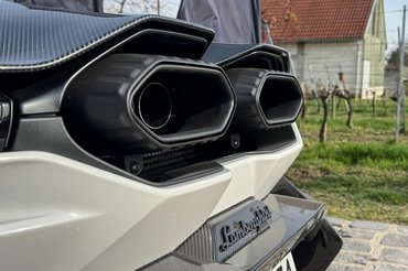 Ha valaki pózolni akar vele, megértem. Milliónyi kombinációban pakolható össze a külső és a belső megjelenés, a felnik, fékek, biztonsági övek színei, dekor matricák és egyebek. Jó ez az új külső irány is a három pálcából összerakott menetfényekkel, eredeti, de nekem a hajtóműként magasan és egyenesen kivezetett kipufogók is kifejezetten bejönnek. Lángolnak is, nyilván. Döbbenetes szerkezet elképesztő kivitelezéssel. Senkinek nem kell rajongani ezekért, de lehet, mert még mindig tradicionálisan Lamborghini, és ez nagy szó.
