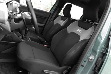 A sávtartóval elég kevés autóban tudtam megbarátkozni, a táblafelismerő pedig csak a legrosszabb rémálmaimban tör elő. Állandóan csipog valamiért és fantom táblákra hivatkozva bélyegez meg gyorshajtónak, ha tehettem volna akkor hamarabb kapcsolom ki, mint hogy elfordítom a kulcsot a gyújtáskapcsolóban. Mert igen, az alap Dusterben ne keress kulcs nélküli nyitást-zárást vagy indítást, ezen a szinten ilyen nincs. De akkor mégis miért fizetsz újautós árat? Például a térkínálatért. Ha nem is kényelmesek, rövid távon abszolút nem kellemetlenek a kemény szövetülések és a térkínálat is remek. Nem csak derékban érzed bőnek az autót, de a hátsó sorban sem hallottam panaszkodni senkit. A láb és fejtér a karosszéria formájából, illetve a 2657 milliméteres tengelytávból fakadóan elég jó és mivel ezen a szinten az ablaksötétítés is legfeljebb hiú ábránd, ezért nincs klausztrofób hangulat – a hátsó sorban sem.