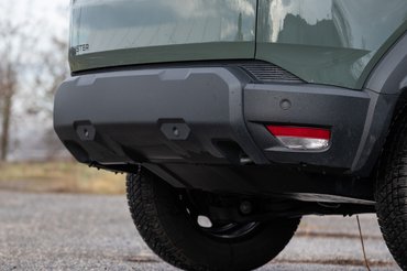 A Dusterről üvölt, hogy terepjáró, pedig inkább csak SUV. A dizájn rendesen kívánja, hogy elhagyd az épített utakat és áttúrd magad az erdő legizgalmasabb ösvényein, miközben a futómű és ez a felszereltség egyáltalán nem erre való. A műanyag idomok az ajtók alján, a sárvédőíveken és az első-hátsó lökhárítóban optikailag megemelik az autót, pedig alapból is van 209 mm hasmagasság, ami nem kevés – sőt, az összkerekes alatt 217 mm.