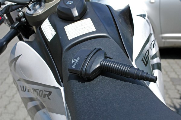 Terjedőben levő praktikus módszer a csepptöltő. Általában vízálló tokban az ülés alá bújtatva csatlakozót húznak, amire a garázsba érve bármikor ráköthetjük a töltőt, így biztosítva a kellő elektromosságot. Azoknak, akik radarral vagy GSM pagerrel is védik a motort, különösen ajánlott a készülék.