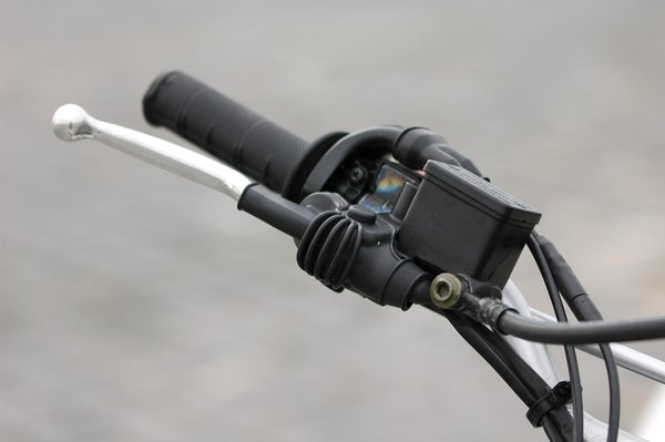 A fék- és kuplungkar anyaga sajnos olcsó és pusztulós: mikor a kis lendület és a renyhe gázreakció miatt belefúródtam a domboldalba, rögtön letörött – nem félbe, hanem tövestül. A féktárcsa átmérője elöl mindössze 250, hátul 220 milliméter. A nyergek ereje nem félelmetes, de arra, hogy biztonsággal megálljunk vagy keresztberakjuk a fenekét, elégségesek. A motor önsúlya sem vészes, a 134 kiló nem leküzdhetetlen feladat a Nissin rendszernek. A gyári endurógumi terepen képes kapaszkodni, de aszfaltos tapadása kellemesen meglepett – a Kawasaki KLX250-en tapasztalt csúszkálás és bizonytalankodás egyáltalán nem volt jelen.
