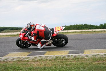 Na, a Trix-M Yamahának adtam kettesben egy ilyen félóvatos, pettingelős gáztekerést a felvezető körben, az meg kivágta magát kerékre, de csúnyán. Mondtam anyád. Nem akartam alkatrészekben visszaadni a motort, Győzinek, ezért a gumik bemelegítésére egyötöd-egyhatod gázokat használtam. A célegyenesben eszembe jutott, hogy ezen gyorsgáz van, vagyis a gázkar áttételét megváltoztatták, tehát kevesebb utat kell megtennie a 100%-os állásig. Tiszta sor, csak szokni kell.