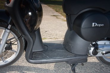 Meg aztán, egy mosoly sok mindenre orvosság, és a Pepe elejére jó nagy vigyort rajzoltak. Szóval, nem lehet rá haragudni, aranyos, mint egy kölyökkutya. Kényelmes a felszállás, nem kell átlépni semmin, teljesen sík a lábtartó deszka, csak enyhén nőies mozdulattal rá kell tottyanni a nyeregre. Kis önindítózásra beindul a kétütemű, és lehet menni.