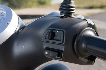 A gázmarkolaton picivel nagyobbat kell fordítani koppig, nekem kényelmesebb lett volna, ha mondjuk tíz fokkal kisebb ez a szög. Cserébe viszont nagy erénye a Pepének, hogy a két végállás között is szépen lehet szabályozni. Magyarán nem teljesen digitális a gáz, könnyedén tartható vele a nulla és hetven között bármilyen tempó.