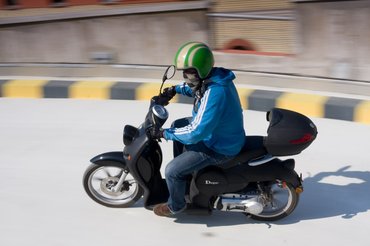 A variováltós robogók között általában nincs nagy különbség, legfeljebb abban, hogy mekkora késéssel kezdenek el valóban gyorsítani, mert elinduláskor van egy kezdeti, vánszorgó szakasz. A Pepe ebben a versenyszámban egészen kis reakcióidejűnek számít, utána pedig jól gyorsul. Mint egy átlagos, ötvenes kétütemű, ha kivették a fojtást, persze semmi agresszió, semmi gumifüstölés, semmi BMW-legyorsulás. Megy, teszi a dolgát. Engem meglepett, hogy komolyan sportosnak látszó, kamurezonátoros 50-es robogókat lenyomott: egyformán gyorsult velük, majd amikor azok kifulladtak, ő még ment egy kicsit. Valószínűleg azért, mert a nagyobb kerék miatt más az összáttétel, így picit megnő a végsebessége. Igaz, kitartásra azért szükség van, hogy elérjük ezt a nagyjából 70-75-ös tempót (tudják: professional driver on closed course).